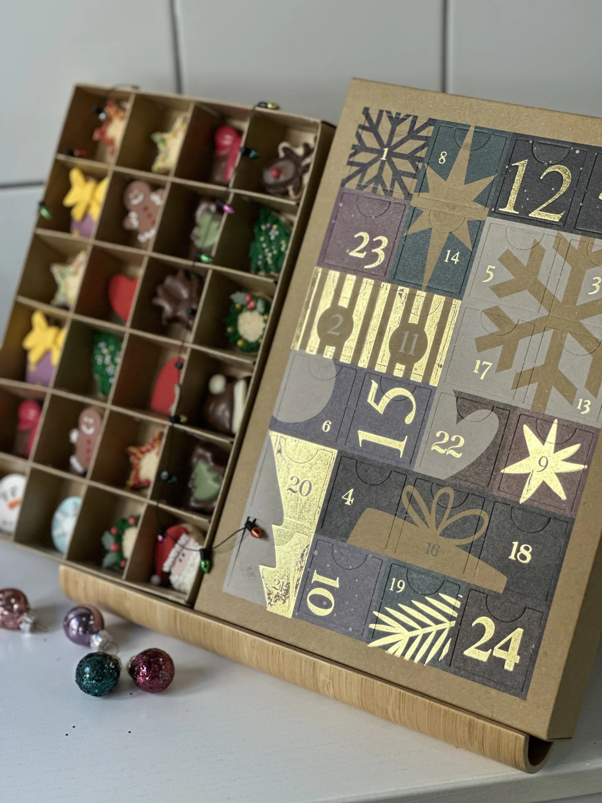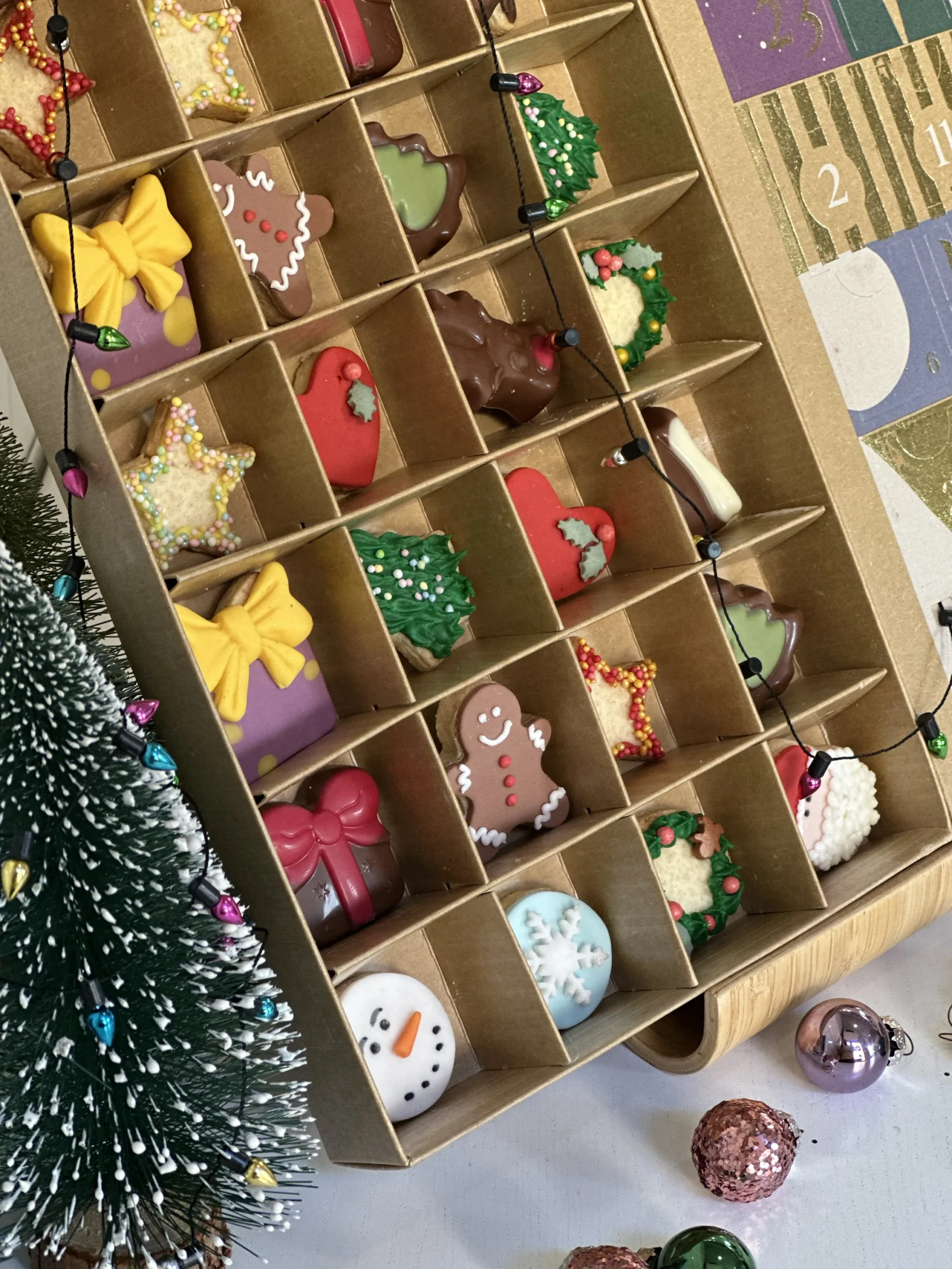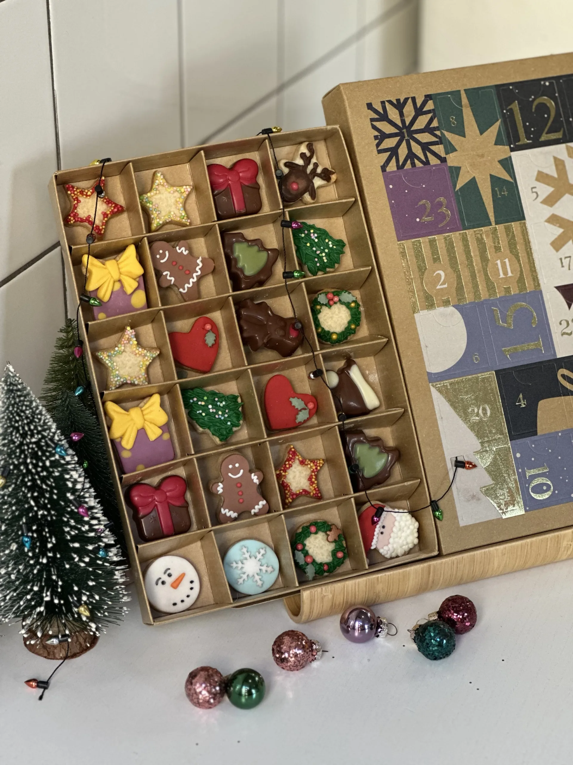 Nuestro calendario de adviento es la mejor cuneta atrás para la Navidad. Incluye 18 mini galletas artesanales y 6 chocolatinas con leche. Reserva ahora y ven a recogerlo a partir del 28 al 29 de Noviembre.